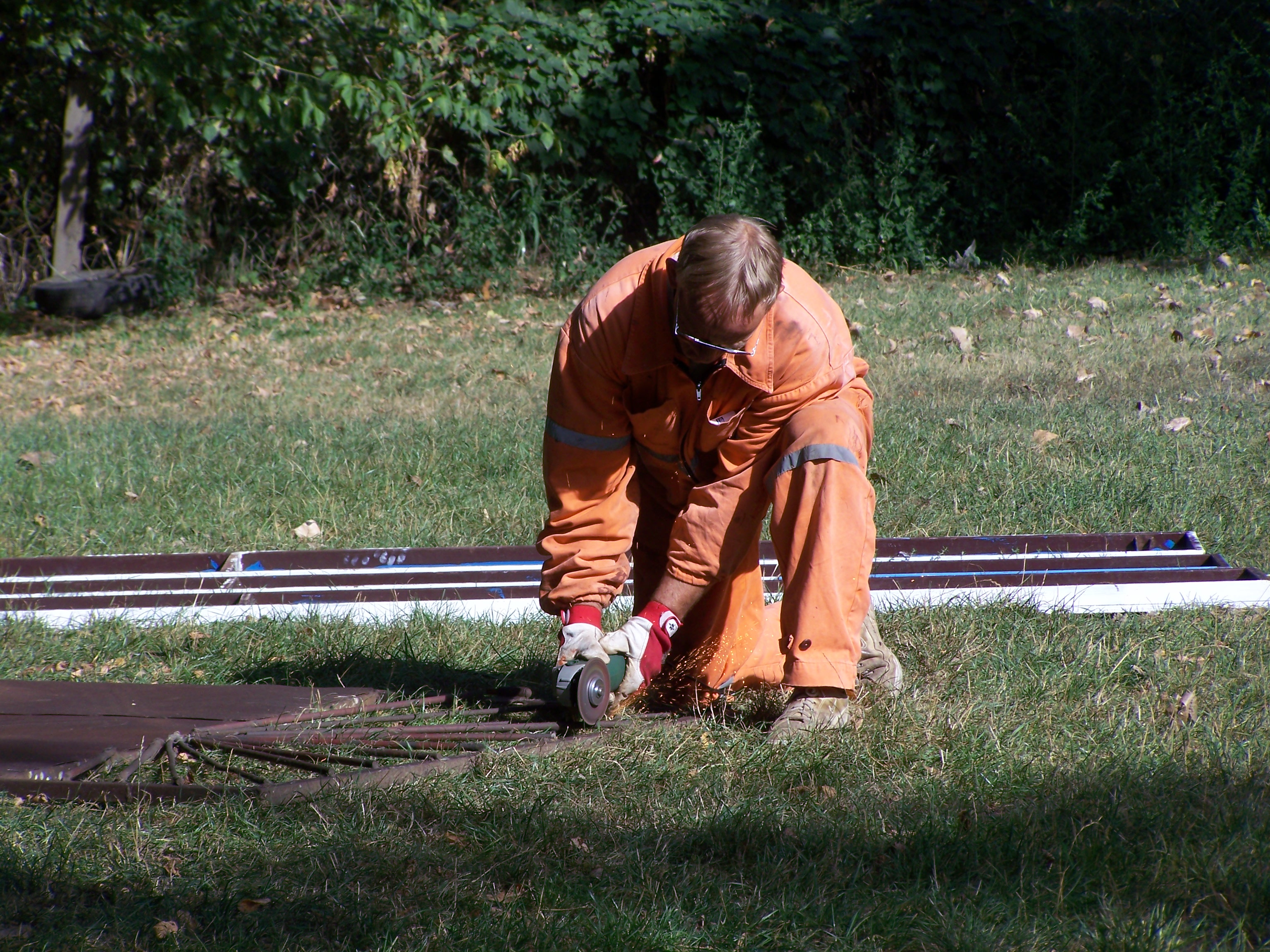 Gábor és Csabi csinálják az agility raktár ajtaját 2009.09.20.